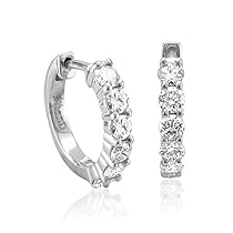 Earrings are very well constructed and stay in my ears my long hair does not pull them out when it gets tangled in them. I sleep in these earrings and I can't feel them at all. They are small hoops which I wanted but are very noticable in the ear. Great size to wear daily. The diamonds are white with no seen flaws to my eyes.